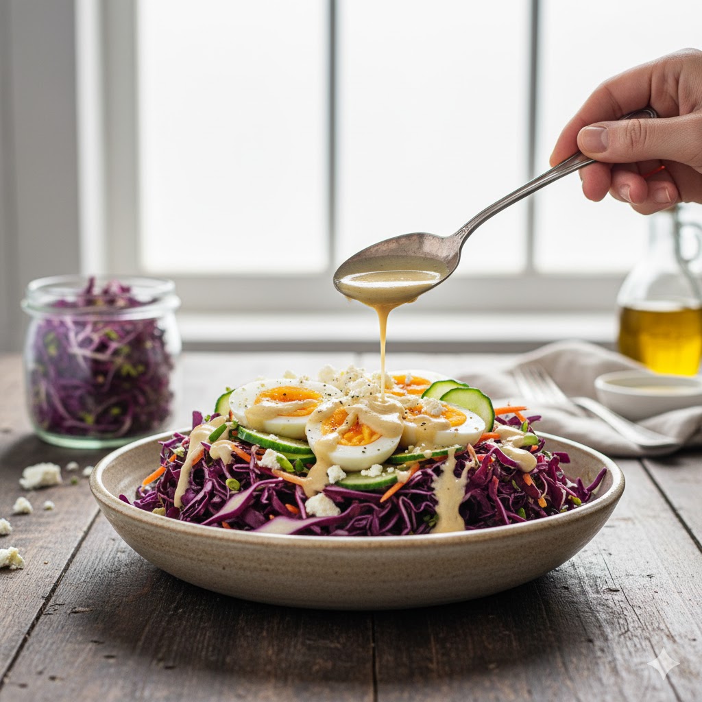 💜 Svěží salát z klíčků červeného zelí s vejci a citronovo-tahini dresinkem